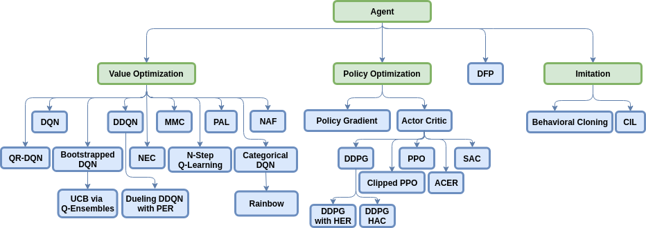 * SAC algorithm * SAC - updates to agent (learn_from_batch), sac_head and sac_q_head to fix problem in gradient calculation. Now SAC agents is able to train. gym_environment - fixing an error in access to gym.spaces * Soft Actor Critic - code cleanup * code cleanup * V-head initialization fix * SAC benchmarks * SAC Documentation * typo fix * documentation fixes * documentation and version update * README typo