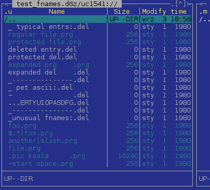 1.2 Added configuration env variables: UC1541_VERBOSE and UC1541_HIDE_DEL. First one, if set to any value, will cause that error messages from c1541 program will be redirected as a failure messages visible in MC. The other variable, when set to any value, cause del entries to be not shown in the lister.